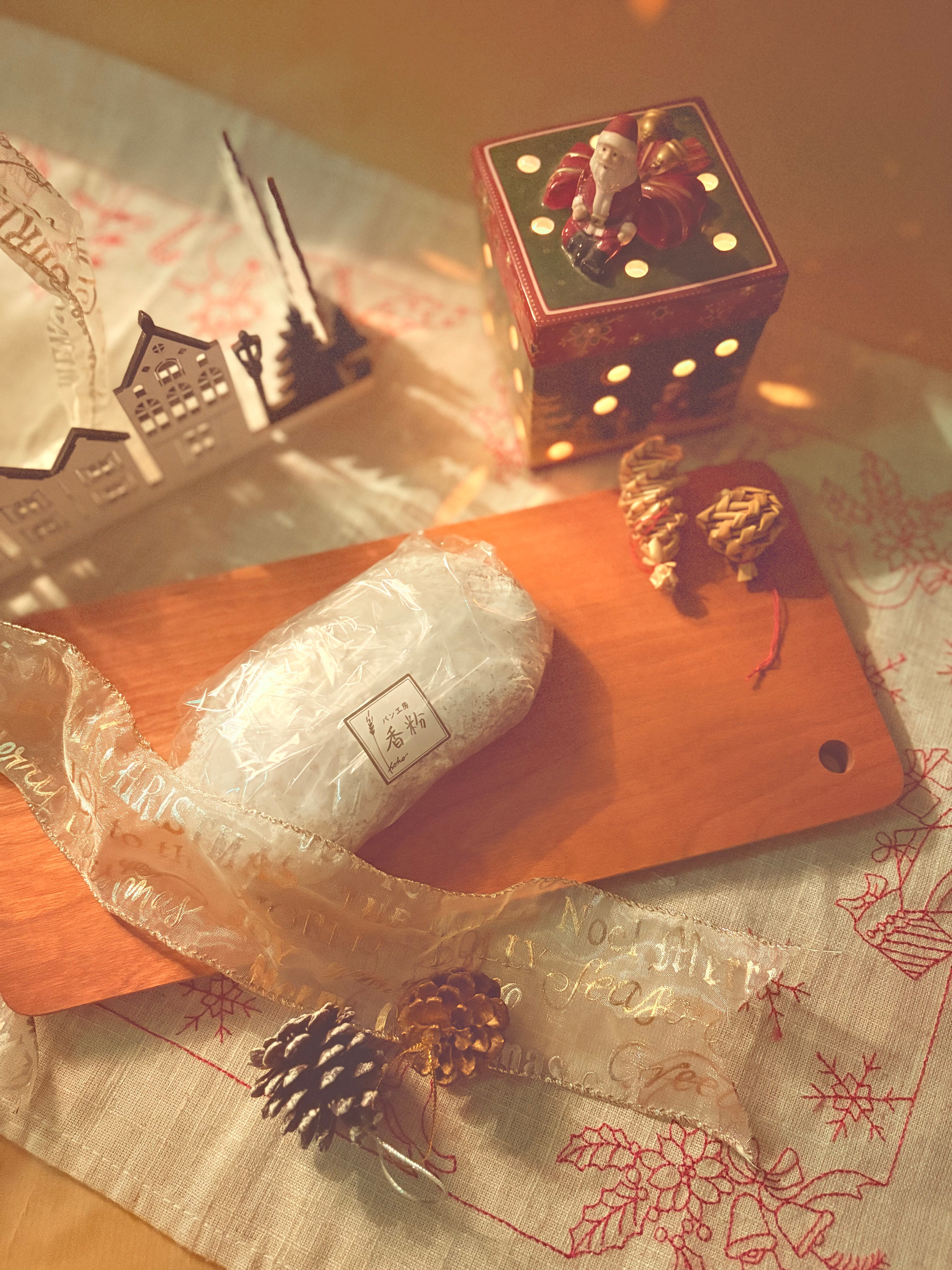 芳醇なラム酒にじっくり漬け込んだドライフルーツ(レーズン、オレンジピール、無花果など)と、くるみ、ピスタチオなどのナッツを贅沢に練り込みました。一口ごとに広がる濃厚な風味は、ゆったりと過ごすクリスマスにぴったりな特別な味わいです。